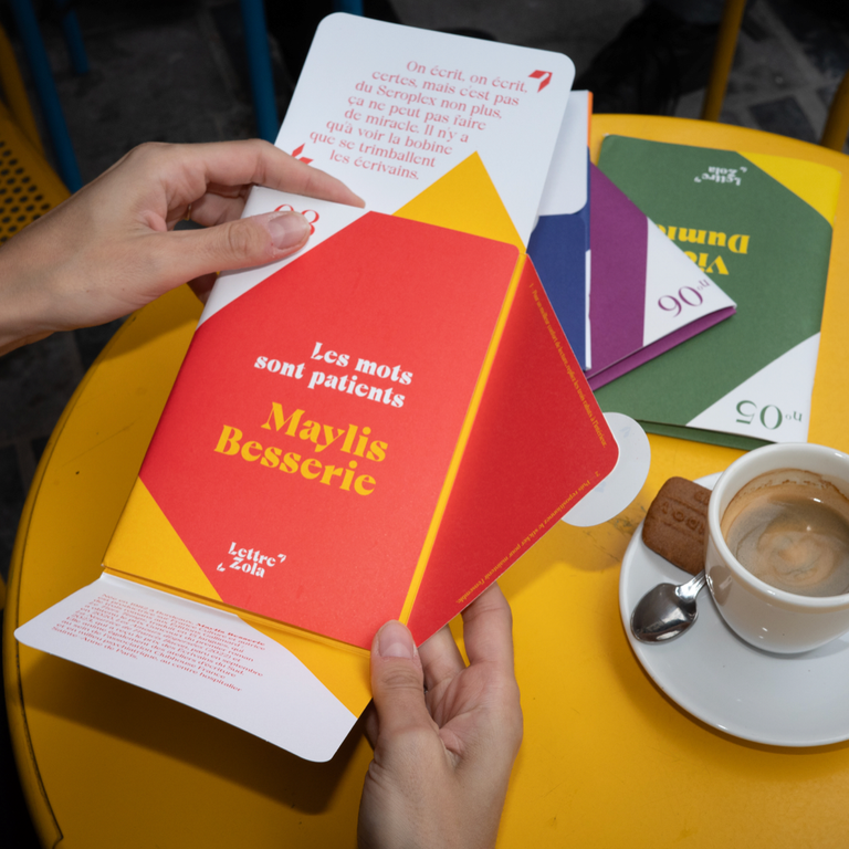 C'est pourquoi nous avons créé une maison d’édition indépendante (et un peu particulière) pour mettre la littérature en mouvement. Chaque mois, nous confions à un écrivain contemporain le soin de raconter notre époque dans un format unique : un livre-enveloppe de 50 pages à lire d’un souffle. Envoyée par la Poste, chaque publication s’inscrit dans un rituel intime.